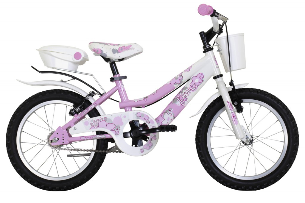 Bicicletta da bimba, 16’’ completa di cestino anteriore, bauletto posteriore, carter copricatena, cerchi e freni v-brake in alluminio, telaio predisposto per stabilizzatori laterali e cavalletto laterale in alluminio