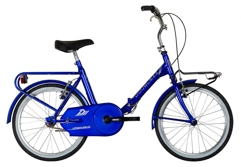 Ciclo unisex, 20’’ pieghevole telaio in acciaio completa di portapacchie portacesto, impianto luci a led, carter copricatena cavalletto laterale, freni e leve v-brake in alluminio.