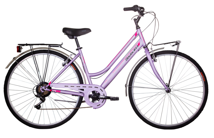 Ciclo CITYBIKE TRK TRAVEL DONNA , 28’’ telaio in alluminio cambio shimano acera completa di portapacchi e porta cesto anteriore verniciati in tinta, impianto luci a led, carter copricatena, retina paraveste nylon, manubrio, attacco, freni e leve v-brake in alluminio, sella skai imbottita con molle. Colorazioni 2022