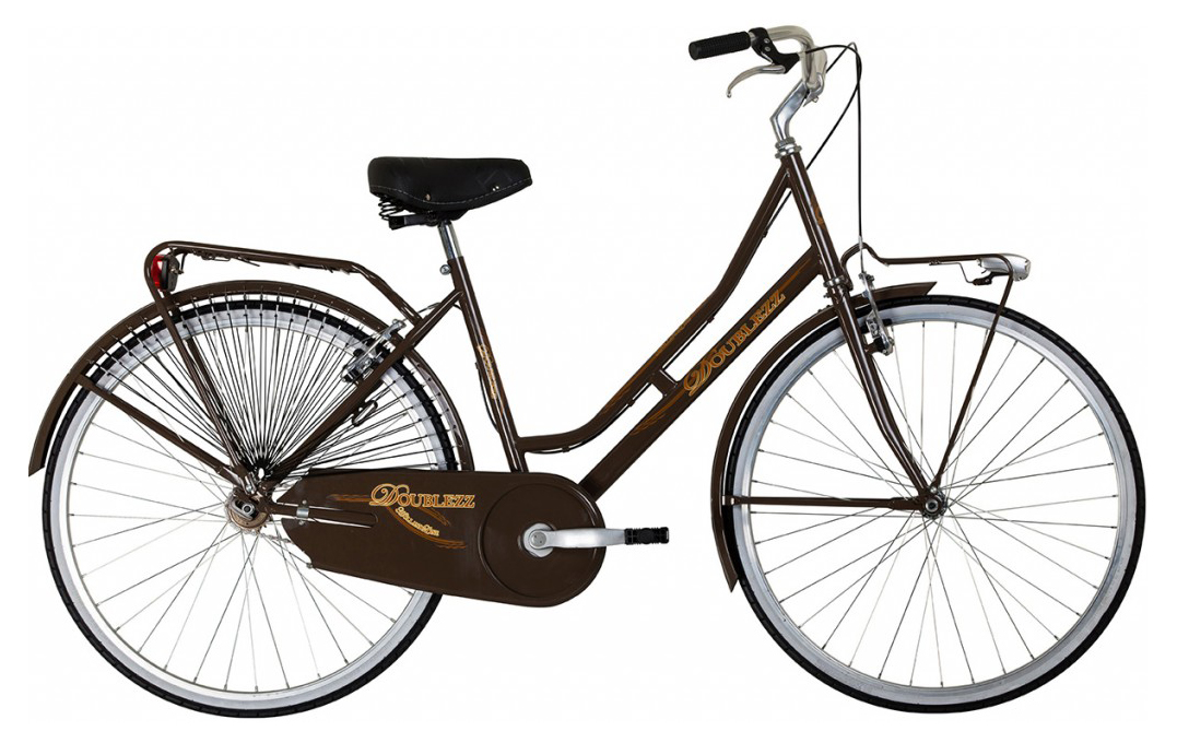 Ciclo Olanda donna, 26’’ telaio in acciaio completa di portapacchi e portacesto anteriore verniciati in tinta, impianto luci a led, carter copricatena, retina paraveste nylon, manubrio, attacco, freni e leve v-brake in alluminio, sella skai imbottita con molle